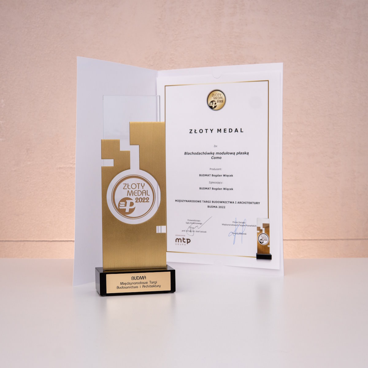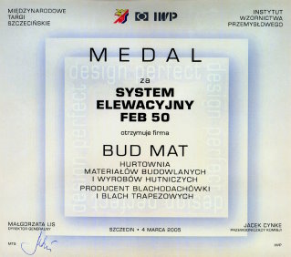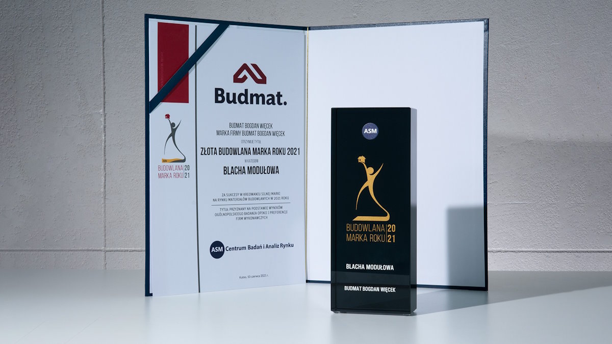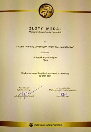 Под этим лозунгом, вместе с системой кровельных отделочных элементов, мы входим в рынок кровельных покрытий. Мы уверены, что крыша, с нашими отделочными элементами, каждому дому придаст неповторимый, очень эстетический внешний вид, которого раньше нельзя было ожидать от кровли. За наши инновационные технические решения, наша система была удостоена Золотой Медали на Международной выставке Budma 2019 в Познани.