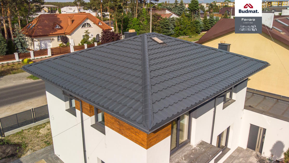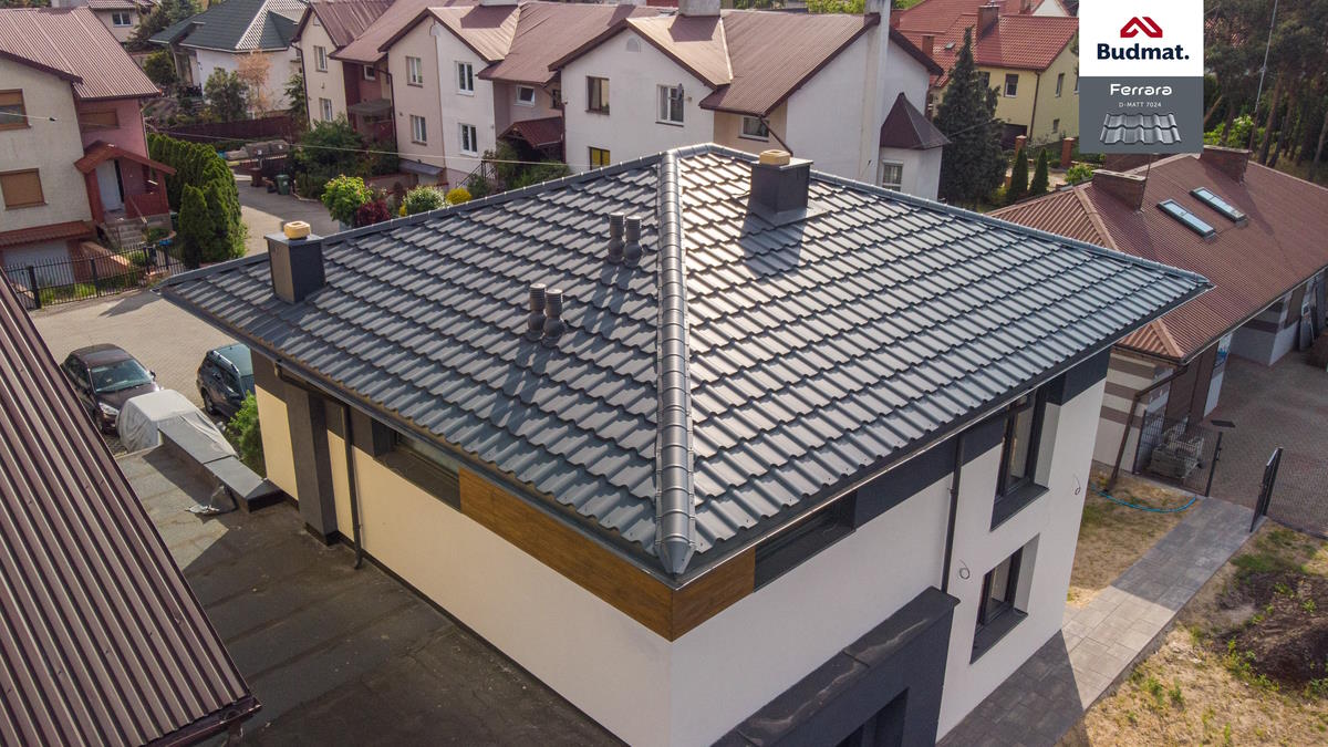 Главная →  Портфолио →  Портфолио черепица →  Крыша для дома BUDMAT Ferrara Графитовый D-MATT 7024